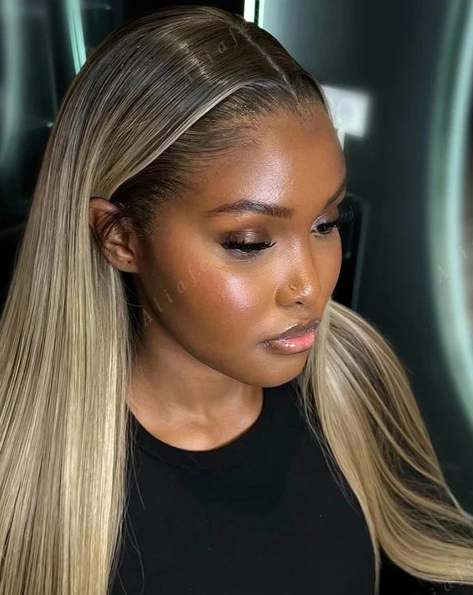 Ash Blonde Wigs with Dark Roots / Perruques Blonde Cendrée avec Racines Foncées